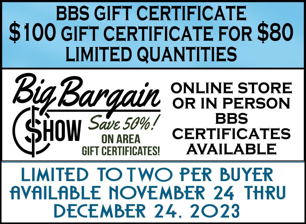 Big Bargain show $100 certificate for $80 - options are: paper or digital